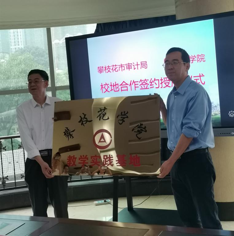 签约仪式上,张旭辉代表学校对攀枝花市审计局长期以来对beat365人才培养、学术科研、师资队伍建设等工作的支持与帮助表示衷心的感谢。王玖斌局长回顾了学校与市局前期合作的成果,并介绍了教学实践基地前期建设情况。与会人员就校地合作相关工作进行了深入交流和热烈讨论。双方均表示,协议的签署开启了校地合作的新阶段,双方将进一步深化沟通交流,细化落实合好作协议中的各项任务。张旭辉副校长和王玖斌局长共同签署了校地合作协议书,并为教学实践基地揭牌。