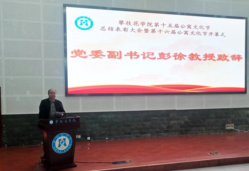 彭徐作了重要讲话。他强调,学生公寓管理工作必须将坚定跟党走的信念与文明修养的培育有机统一,将坚持方向目标的树立与脚踏实地的践行有机结合。最后彭书记对学校各部门进一步形成合力加强公寓文化建设和学生思想政治教育提出了要求。