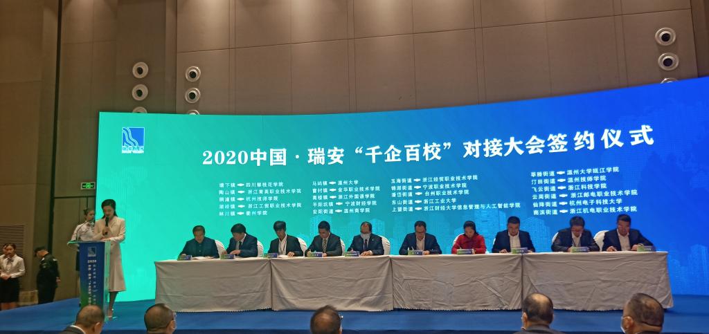 11月13日,2020中国·瑞安千企百校对接大会在瑞安市葡萄园宴会中心举行,招就处、数计学院、智能制造学院相关负责人参加了本次大会。