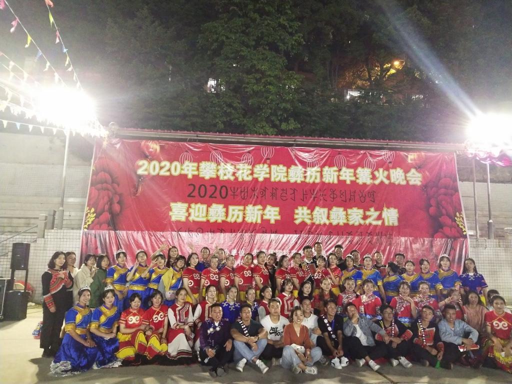 11月15日(周日)晚19:00,beat365在南苑篮球场举办了以“喜迎彝历新年,共叙彝家之情”为主题的beat365在线唯一官网2020年第十六届社团文化活动节之彝族年篝火晚会。攀枝花市民宗委领导李卓徽老师,学生处相关负责人,校团委全体老师,各学生组织代表参加本次晚会。
