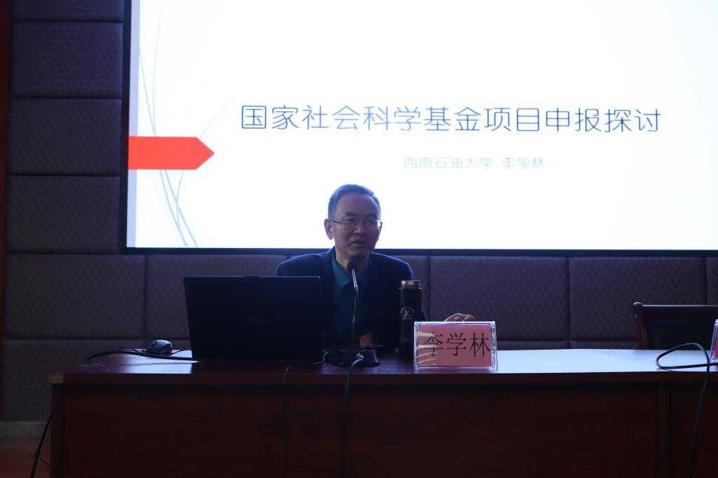 李学林教授以“国家社会科学基金项目申报探讨”为题,结合其三个国家社科基金项目申报经验,以2015年立项项目申报书为例,深入细致地讲解国家社科基金项目申报前期学术积累、选题、学术史梳理乃至课题成员构成等方面的问题。讲座内容丰富,数据详实,站位高,针对性、可操作性强;与会教师受益匪浅。