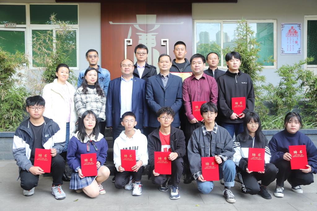 会后,彭徐为“清风廉学社”指导教师何悦及社团骨干成员颁发了聘书。