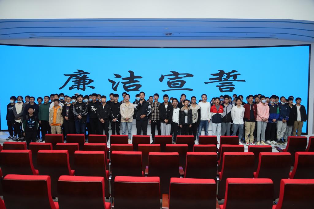 同学们宣誓表示,“将正直坦荡,表里如一;俭以养德,廉以立身;成为一名不忘初心、廉洁自律的当代大学生。”