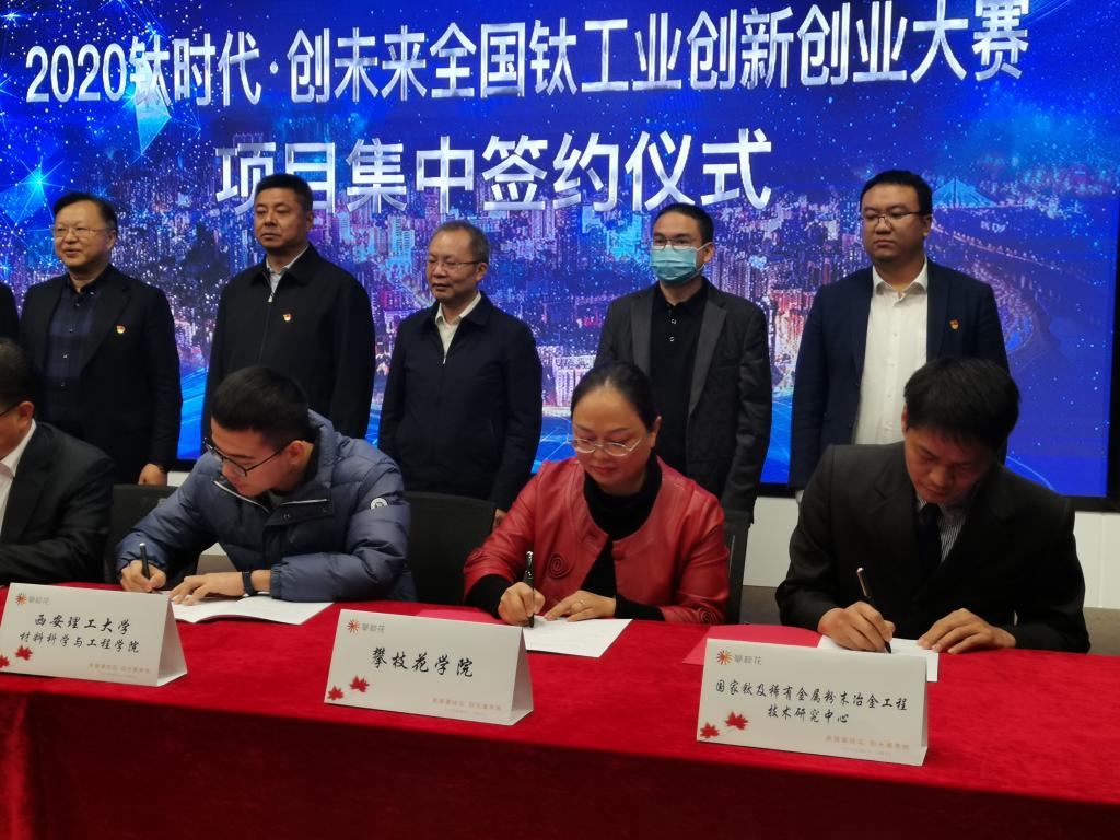 12月26日,beat365与国家钛及稀有金属粉末冶金工程技术研究中心在2020“钛时代•创未来”全国钛工业创新创业大赛现场——攀枝花市奥林匹克双创中心路演大厅达成合作协议,共建国家钛中心攀枝花基地与产教融合实践教学基地。