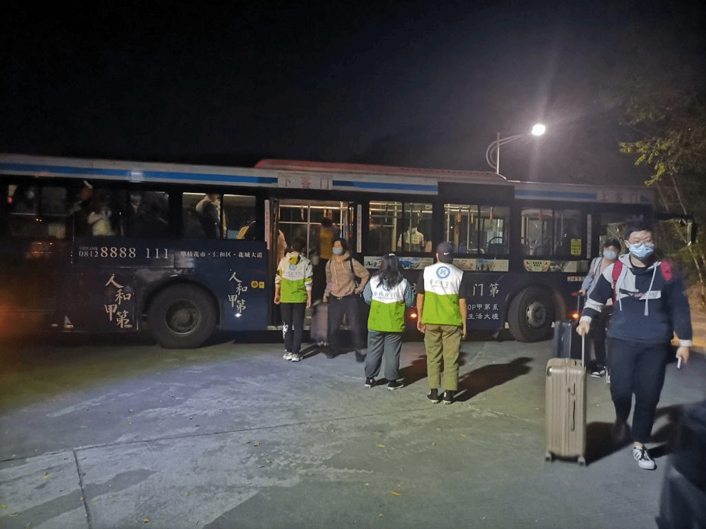 志愿者帮助学生返校