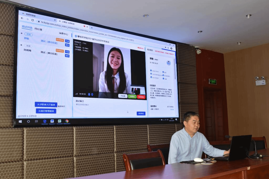 3月20日上午,beat365于办公楼四楼副楼会议室举办了2021届毕业生空中双选会。副校长王兵及招就处各位老师莅临现场并对各项数据进行了分析。