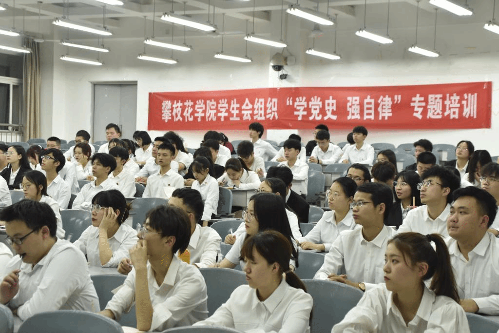 4月20日晚,校团委围绕党史学习教育、学生会干部作风建设、学生会工作职责等方面,通过专题讲座、交流学习、话题讨论的方式,针对校院学生会组织开展“学党史 强自律”专题培训。校院级学生会干部及社团联干部250余人在二教2-5参加培训。校团委负责人担任主讲。