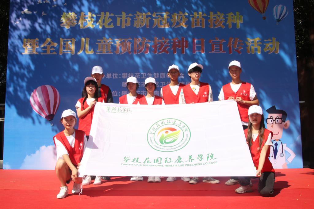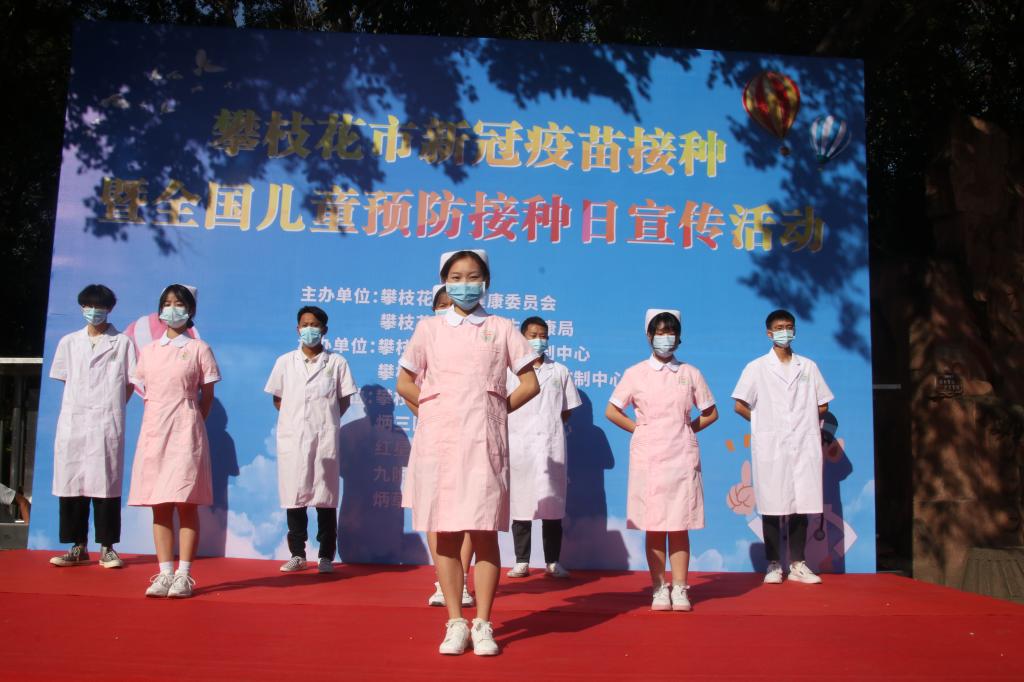 4月24日上午,攀枝花市卫生健康委员会和东区卫生健康局于攀枝花市东区竹湖园广场联合开展攀枝花市新冠疫苗接种暨全国儿童预防接种日宣传活动 ,我院“康养少年”志愿服务队受邀参与活动。
