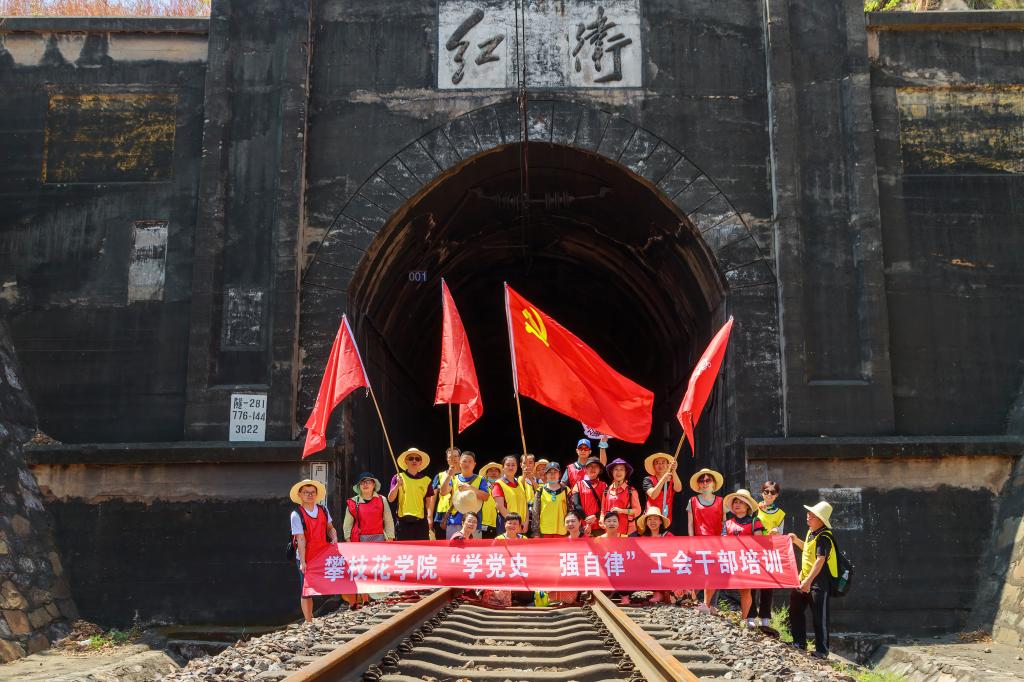 4月23日,校工会组织工会干部30余人到成昆铁路仁和区党史学习教育现场教学点,开展“学党史 强自律 重走铁血成昆路”专题党史学习教育。