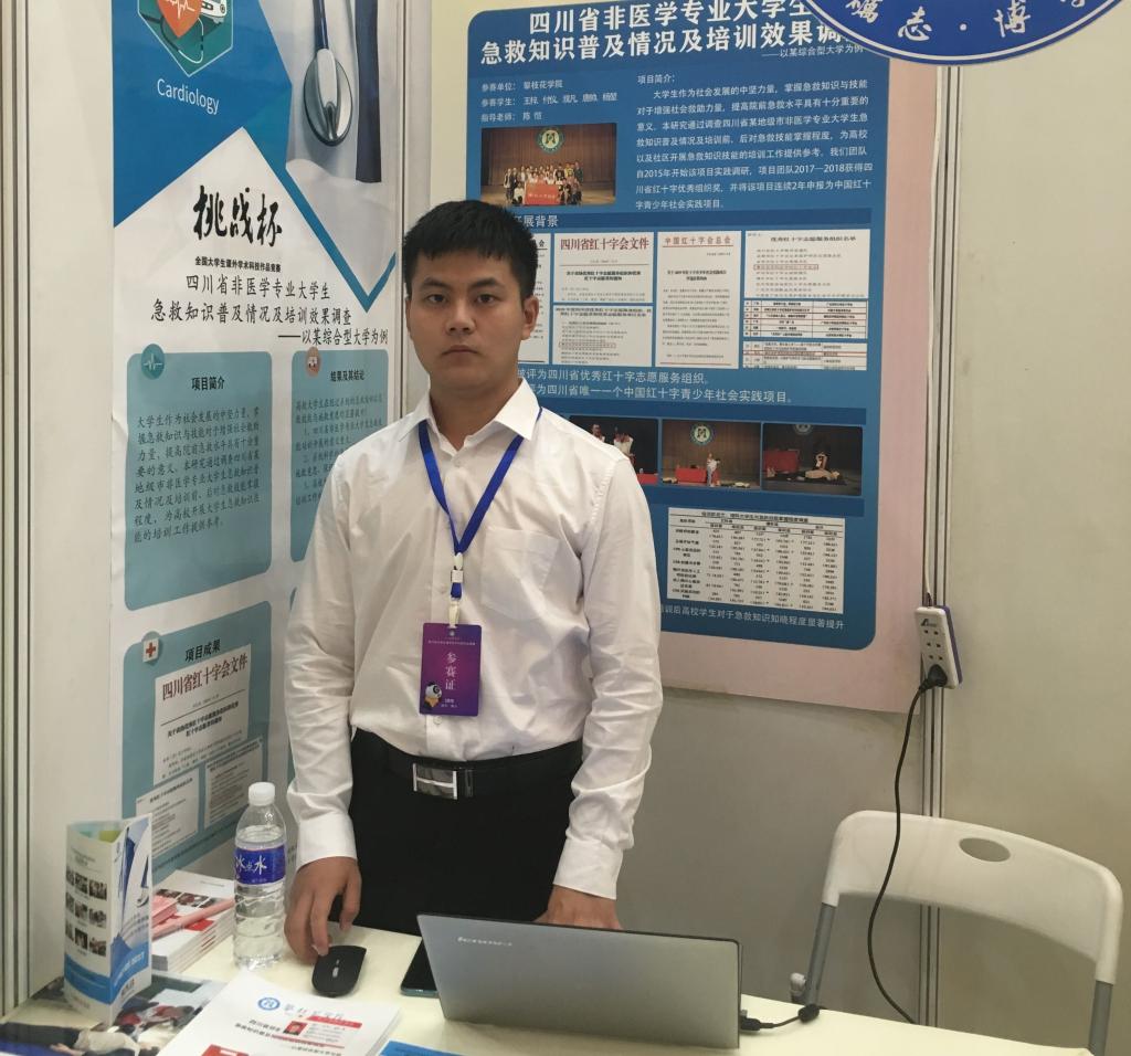 学海无涯苦做舟,作为2018年医学院开展活动的学生组织者,在举行非医学专业大学生急救知识之后,他开始收集资料,伏案写论文。经过夜以继日的奋斗,最终,在《健康之友》上成功发表《四川省非医学专业大学生急救知识知晓现况调查》;之后,又在《世界最新医学信息文摘》上发表《beat365在线唯一官网医学生人体器官捐献意愿及影响因素调查研究》。期间,他参与了省市级大创“探究神经系统对视觉运动整合作用”和“四川省部分大学生家庭开展艾滋病教育现状及干预结果分析”科研课题。