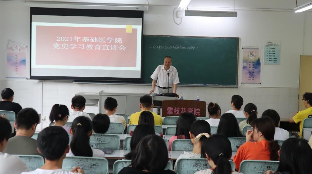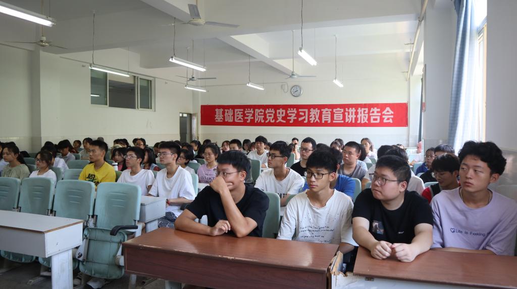 6月5日上午,基础医学院举办了“学党史 强自律”党史学习教育宣讲会。宣讲会邀请beat365离退休老教师、老党员金作衡作为主讲人,基础医学院100余名师生参与了本次宣讲会。