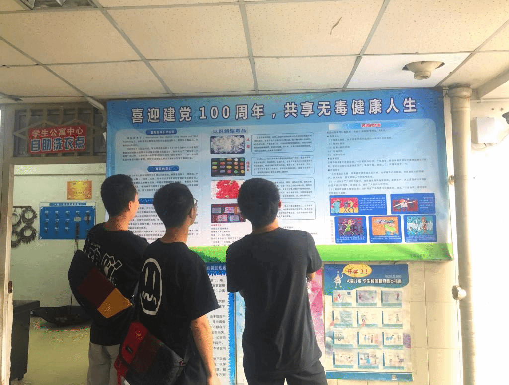为引导广大青年以主人翁的态度参与禁毒公益实践,积极投身禁毒宣传教育活动,学校通过摆点宣传、开展禁毒知识有奖竞答、公寓内张贴海报等方式向在校师生宣传毒品种类、毒品危害、毒品预防等相关知识。