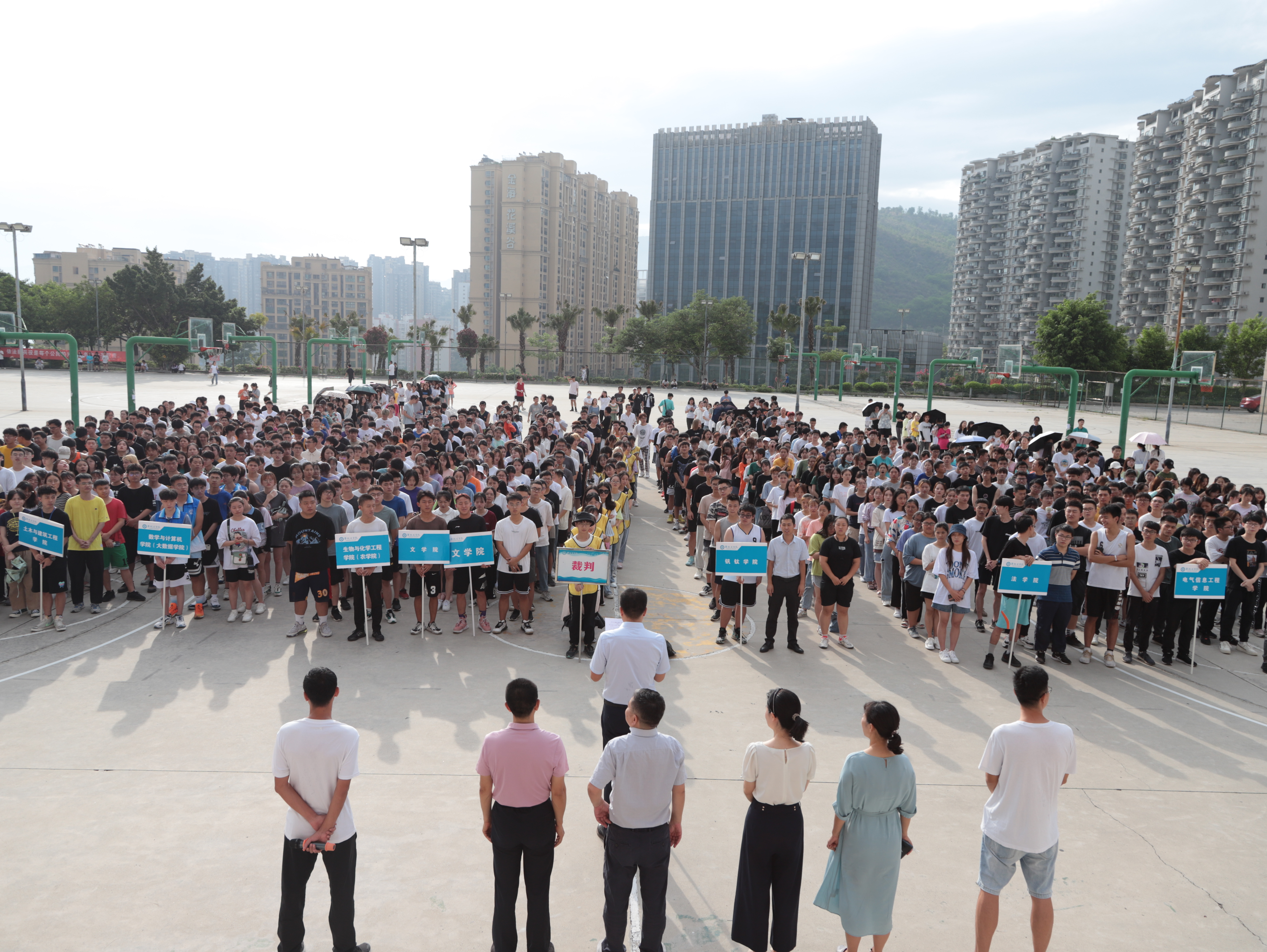 6月26日,学校在篮球场举行第一届“自律攀大,运动达人”挑战赛,副校长王兵,党委统战部、学生处、校团委相关负责人出席开幕式,体育部相关负责人及各学院参赛人员参加活动。挑战赛共有2459人次报名参加。