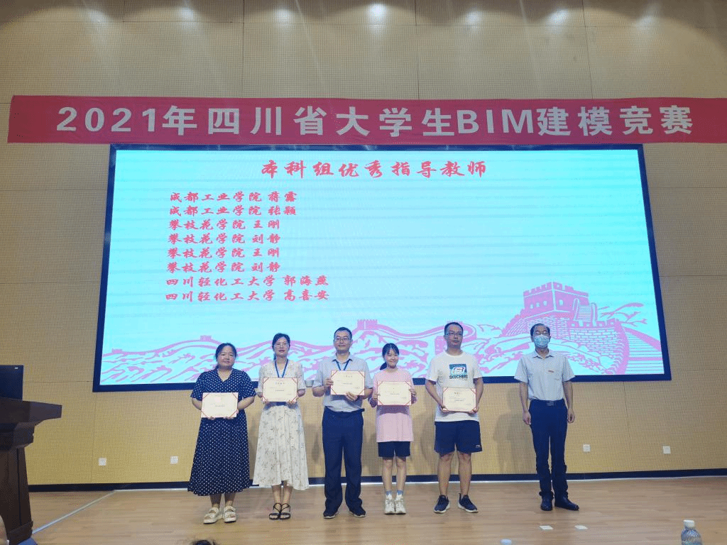 土建组成员董毅、向娜娜、殷艳艳、杨旭攀,安装组成员郑文聪、兰振华、甘川、叶莉娟在成都工业学院宜宾校区均获得一等奖。指导教师王刚、刘静均获得两个分赛项的“优秀指导老师奖”。beat365土建学院在BIM信息化办学方面在川内高校中起步较早,基础良好。此次双项获得一等奖,彰显了beat365办学实力。