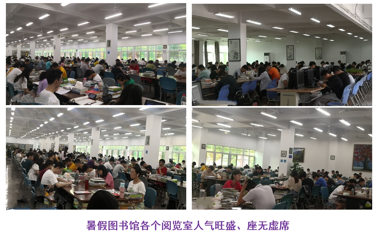 图书馆暑假期间的坚持开放服务深受考研备考学生的热情欢迎,假日里图书馆各个阅览室人气旺盛、座无虚席,每日到馆超过2000人次。