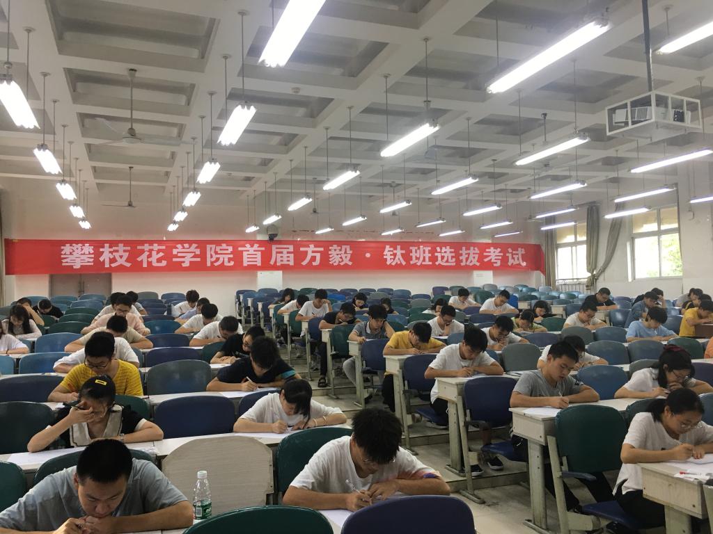 新生入学之初,学校进行广泛宣传,动员高考成绩排名在专业前10%的学生主动报考。通过自愿报名、学院审查、学校审定等环节,目前共有来自钒钛、经管等10个学院的154名同学获得笔试考试资格。学校拟分别选拔30名学生组建文科方毅·钛班和40名学生组建理科方毅·钛班。