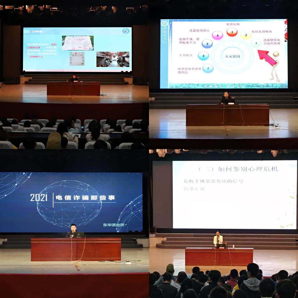 培训内容包括寝室长队伍建设、学生公寓安全教育、防电信诈骗教育、心理危机应对四大版块。学工部老师就寝室长队伍建设,学校宿舍相关管理规定,寝室文化建设等方面进行了详细介绍;保卫处老师对学生在公寓防火、防盗等安全做了详细的讲解;东华派出所警官用形象的案例为同学们讲解如何识别电信诈骗;心理健康中心老师就寝室长应该具备的心理健康教育职责,针对当今大学生普遍存在的心理问题进行精准解答。