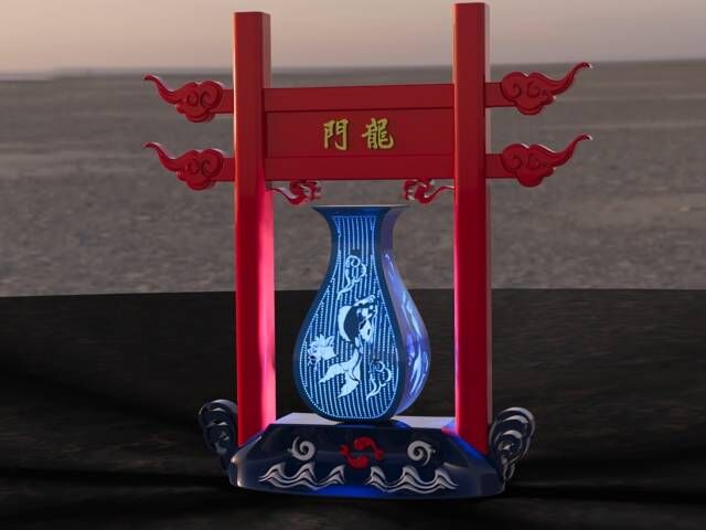 由郭小兰、魏弦老师指导,袁宇星、潘鑫宇、杨溪梦同学设计的作品“鱼跃龙门”,旨在传承非物质文化遗产“针刺无骨花灯”。该作品由灯罩、灯座及龙门三部分组成,通过拓扑优化、迭代优化在节省质量70%、提高可靠性的同时,开拓性地使用3D打印工艺能代替传统针刺工艺的复杂工序,最优化体现非物质文化遗产“针刺无骨花灯”的独特魅力——“方寸玲珑,无骨清奇”。