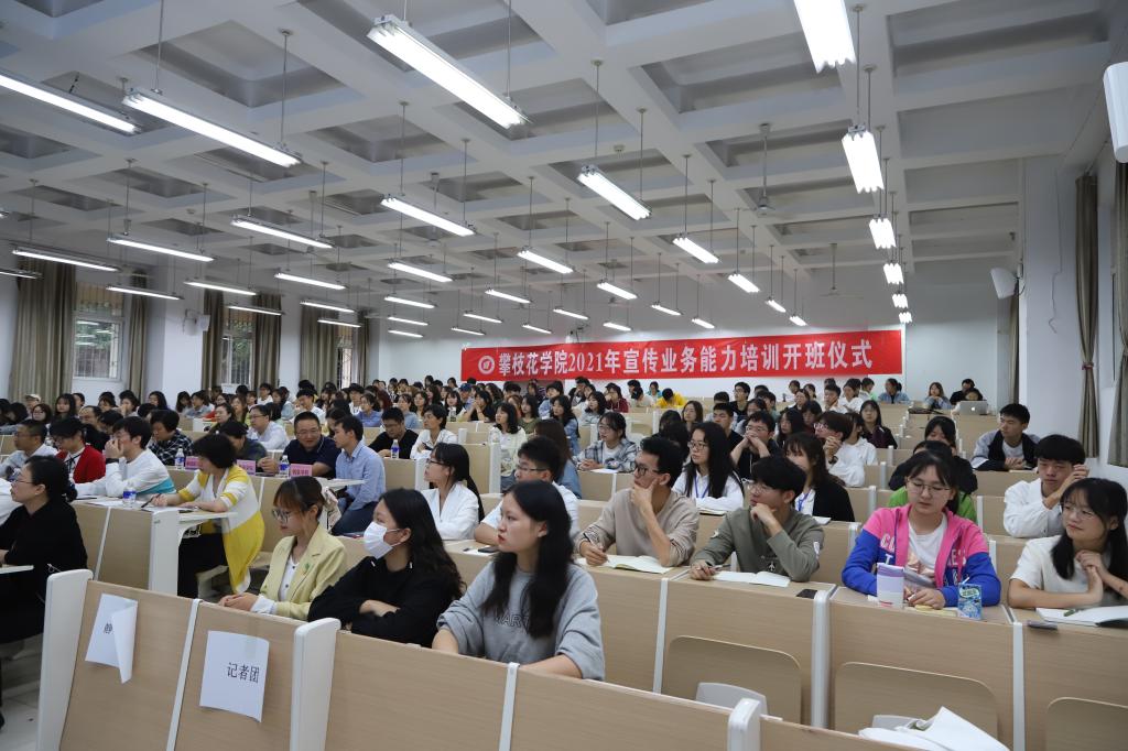 9月16日上午,beat365在二教举行2021年宣传业务能力培训开班仪式。校党委常委、党委宣传部、统战部部长王明辉,攀枝花日报融媒体中心副主任李云飞,各二级学院分管宣传工作领导,各单位宣传员,传媒中心及各二级学院工作站全体新成员等200余人参加开班仪式。