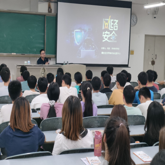 在全国第八届网络安全宣传周来临之际,数计学院结合学科专业特色和分层分类开展纪律规矩教育活动要求,10月13日晚,在二教301教室开展了以“共建网络安全,共享网络文明”为主题的网络纪律规矩教育宣讲活动。本次活动邀请了攀枝花市公安局东区分局网络安全保卫和情报信息大队警官朱泓玦和攀枝花市启明星辰信息安全技术公司工程师、国家注册信息安全专家刘杰作为主讲人,学院相关领导及师生代表170余人参加。