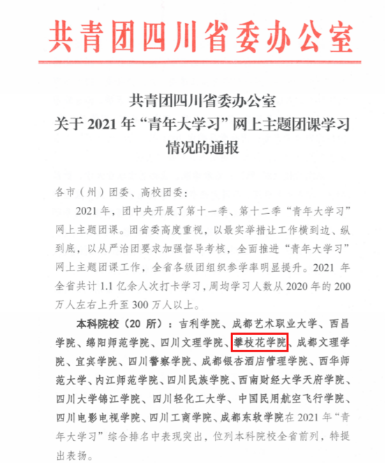 1月4日,在团省委“关于2021年‘青年大学习’网上主题团课学习情况的通报”文件中,beat365团组织以全省本科院校第六名的优异成绩被团省委通报表扬。