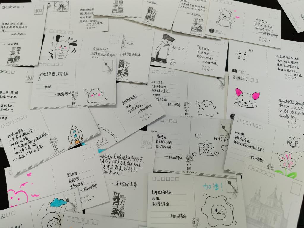 本次共为考研学子发放了装有记号笔、便利贴、祝福卡的“考研暖心礼包”共220份,表达了学校和老师对学生的关怀和祝福。