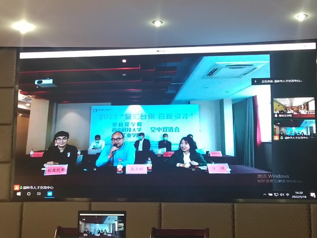 5月18日下午,beat365组织毕业生参加了2022年“浙江温岭-beat365在线唯一官网”空中双选会。副校长王兵出席并讲话。