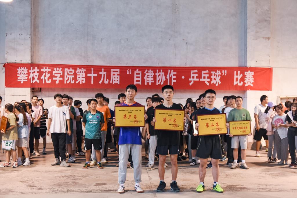 本次比赛设男子团体、女子团体、男子单打和女子单打共4个比赛项目。经过两天激烈角逐,最终,基础医学院、数学与计算机学院、钒钛学院分获男子团体前三名;数学与计算机学学院、基础医学院、生物与化学工程学院分获女子团体前三名;钒钛学院的白利洪获男子单打冠军;数学与计算机学院的王思源获女子单打冠军。