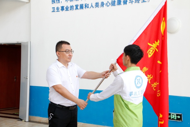 授旗仪式上,“青年突击队”的150名基础医学院学生志愿者高举右手,重温“健康所系,性命相托”的医学生誓言,立志用实际行动践行医学生的初心使命、责任担当。仪式结束后,市青年志愿者行动中心老师对“青年突击队”志愿者进行了疫情防控知识培训。
