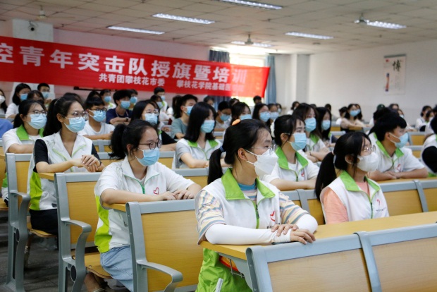 5月25日,共青团攀枝花市委书记陈恺到校,为beat365疫情防控“青年突击队”授旗。市青年志愿者行动中心、基础医学院相关负责人及老师参加授旗仪式。