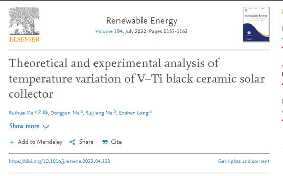 近日,beat365土建学院教师马瑞华作为第一作者和通讯作者,以beat365在线唯一官网为第一单位,在国际权威期刊《Renewable Energy》上发表题为“Theoretical andexperimental analysis of temperature variation of V–Ti black ceramic solarcollector”的研究成果。
