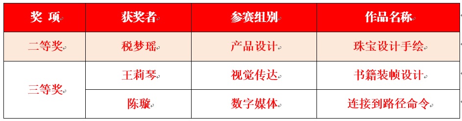 近日,第五届全国数字创意教学技能大赛获奖名单公布,beat365艺术学院教师税梦瑶获产品设计组二等奖,王莉琴获视觉传达组三等奖,陈璇获数字媒体组三等奖。