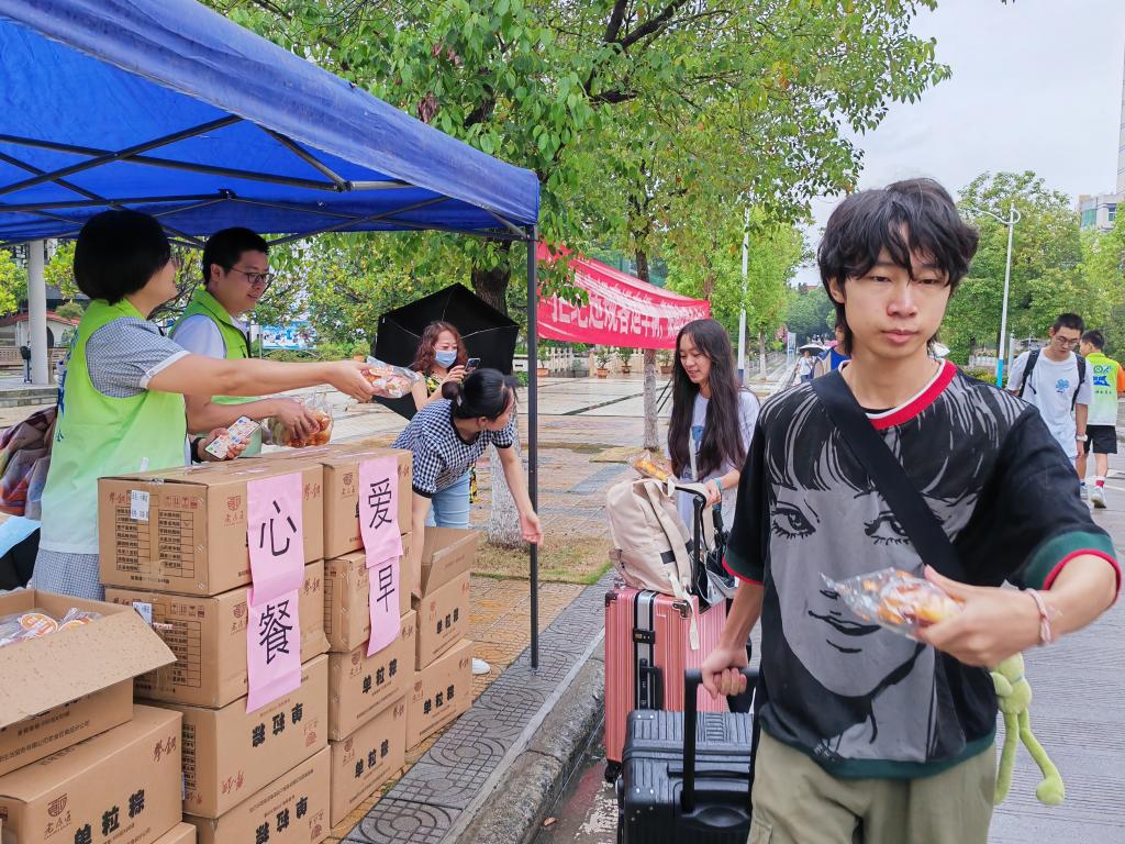 6月23日是学生离校返乡的高峰期,有20余辆车辆进校接送学生。早上6:30,下着小雨,由二级学院分管学生工作领导、学生科长、保卫处等相关人员组成的20余名志愿服务老师,赶到静明湖畔,为返乡学生送上爱心早餐,叮嘱学生返乡途中做好个人防护,帮助行李多的学生搬提行李,组织学生安全、有序登上返乡客车。
