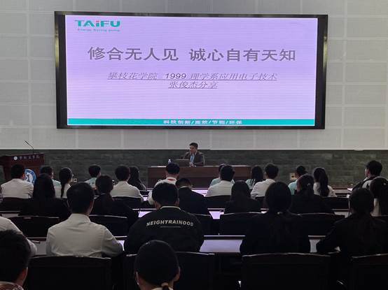 张俊杰以“修合虽无人见,诚心自有天知”为题,分享了自己从学生到上市公司高管的历程,结合自身就业和创业的成功经验为学弟学妹们解疑答惑。关于“拼搏”,他强调要具备赢者思维,要学会做选择,学会坚持,只要努力拼搏,坚持自律,时间总会给出好的结果。
