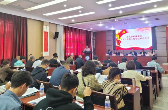 大会在庄严的国歌声中拉开帷幕。学院党委负责人代表上一届委员会作了题为《凝心聚力、锐意进取,努力开创土木与建筑工程学院发展新局面》的工作报告。报告从加强党的建设、人才培养、专业学科建设、课程建设、师资队伍建设、科研和服务地方工作等方面全面客观回顾了学院党委过去五年的工作,分析了工作中存在的不足,并对土建学院接下来的主要工作任务和发展目标进行了展望。参会党员认真聆听并全票通过了报告。