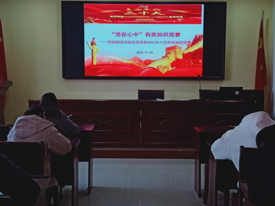 11月25日,智能制造学院党委在学院第一会议室开展了“党在心中”有奖知识竞赛,支部全体学生党员参与了本次知识竞赛答题。