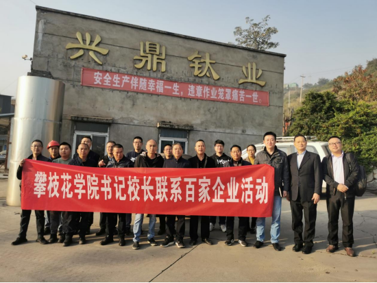 11月30日,副校长王兵带队赴攀枝花钒钛国家高新技术产业开发区开展校企合作交流,产教融合发展部(外联服务中心)、招生就业处和8名博士参加本次走访。攀枝花市兴鼎钛业有限公司总经理杜翔、四川发展攀枝花川发中恒能环境技术有限公司总经理陈胤龙等公司主要负责人陪同了本次走访。