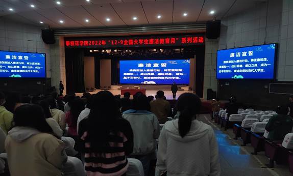 12月7日下午,纪委办、团委、马克思主义学院和清风廉学社在学生会堂联合举办“与廉同行自律启航”全国大学生廉洁教育月系列活动。党委副书记、纪委书记彭徐出席活动,纪委办、团委、文学院、艺术学院师生,“青马工程”班、“方毅·红班”、清风廉学社学生参加活动。