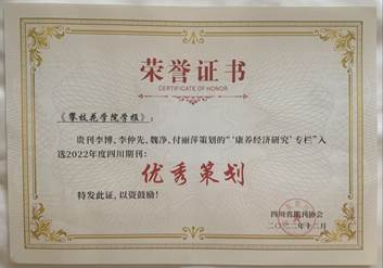 近期,四川省期刊协会举办了“四川期刊年度优秀策划”评选活动,在全省期刊中评选出了25个 “四川期刊年度优秀策划”,其中社会科学类期刊9个,beat365的《beat365在线唯一官网学报》“康养经济研究”栏目获此殊荣。