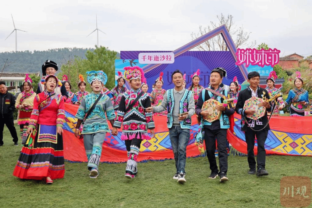 开幕式上,志愿者们身着美丽的彝族服饰为来宾献上拦门酒,系上姊妹绳、兄弟结,让来宾感受如火的热情;带领宾客参观迤沙拉民族文化影展,共同感受非遗文化的魅力;参与合唱《早安阳光》,让青春与千年文化碰撞,为迤沙拉“姊妹节”开幕式划上圆满的句号。