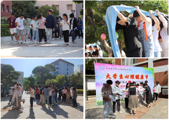 活动现场组织学生开展“心理游戏大闯关”活动,通过“六人七足”、“无敌风火轮”、“诺亚方舟”等心理游戏培养同学们的团队协作精神,提升同学们抗挫折能力。经过激烈角逐,大学生心理协会夺得一等奖,团委心理部及外国语学院获得二等奖,艺术学院和钒钛学院获得三等奖。