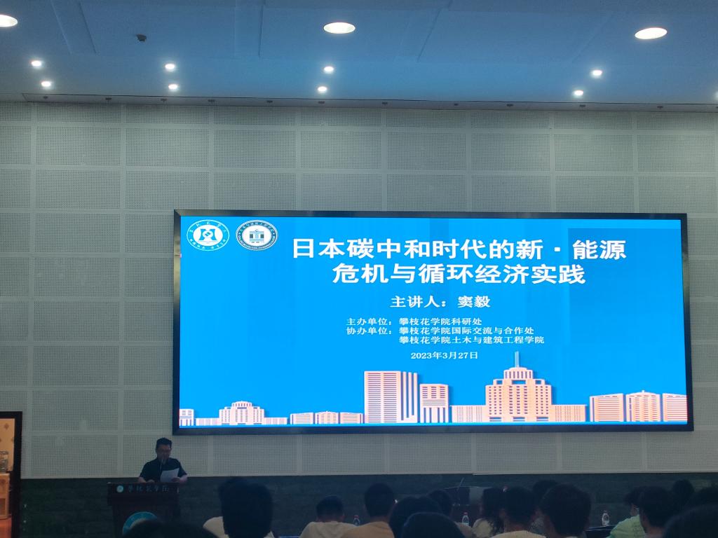 3月27日下午,日本东京大学窦毅博士应邀在学校图书馆学术报告厅作题为“日本碳中和时代的新能源危机与循环经济实践”和“人口减少背景下的乡村振兴尝试”学术讲座,学校国合处、土建学院、生化学院等单位师生代表近200人参加讲座。