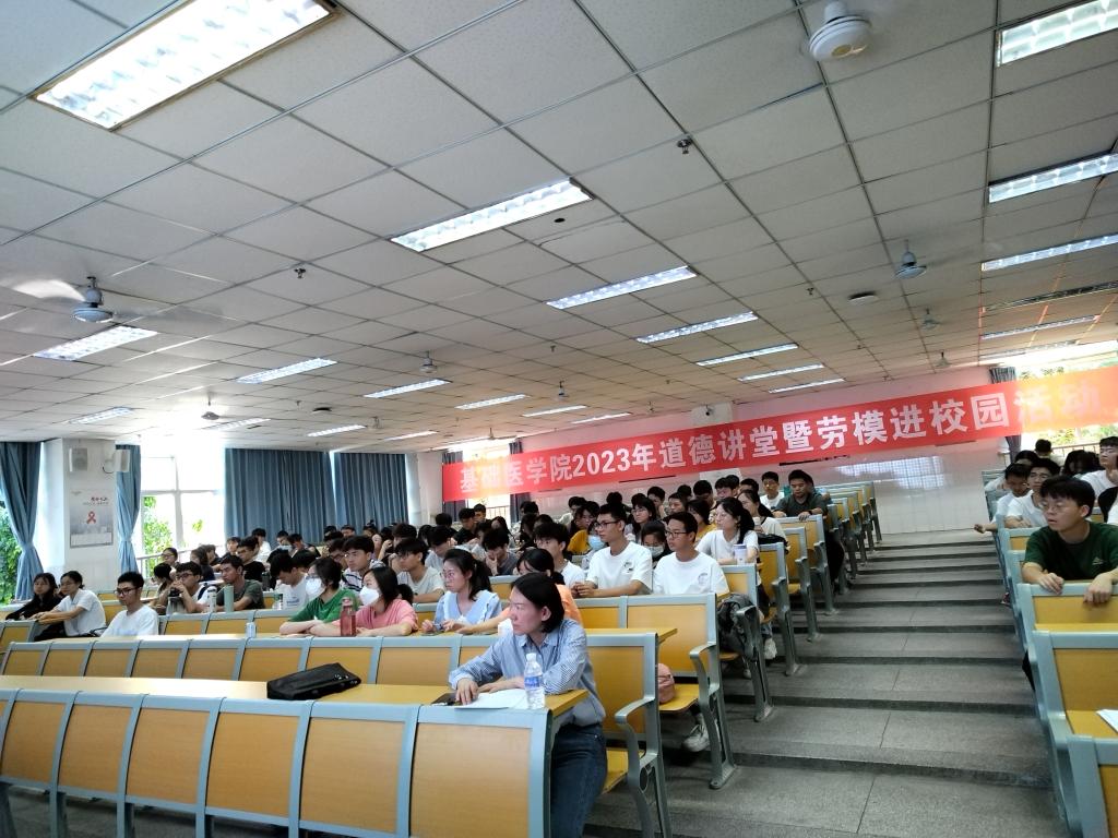 5月17日,基础医学院在西苑笃行楼J1-1教室开展了道德讲堂暨劳模进校园活动,邀请攀枝花开发建设初期“六朵金花”之一杨桂兰做专题讲座。师生共计180余人参加了本次活动。