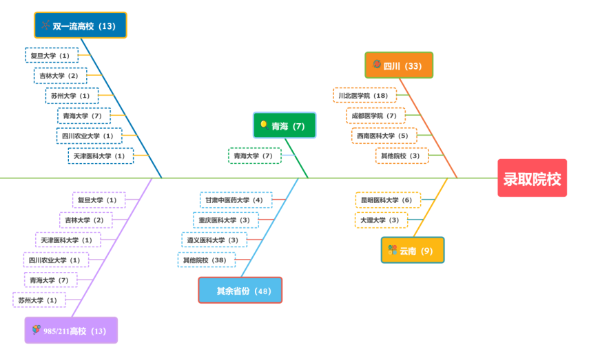 从录取院校质量上来看,13名同学被“双一流”高校录取,其中复旦大学1人、吉林大学2人,青海大学7人,苏州大学1人,天津医科大学1人,四川农业大学1人。同时,学院更是涌现了2个学霸寝室,西苑1号楼217寝室,4位女孩成功考取江苏大学、安徽医科大学、宁夏医科大学、汕头大学。西苑3号楼116寝室的六名有志青年怀揣梦想,找到了属于他们的目标,成功被哈尔滨医科大学、西南医科大学、滨州医学院、青海大学、川北医学院录取。