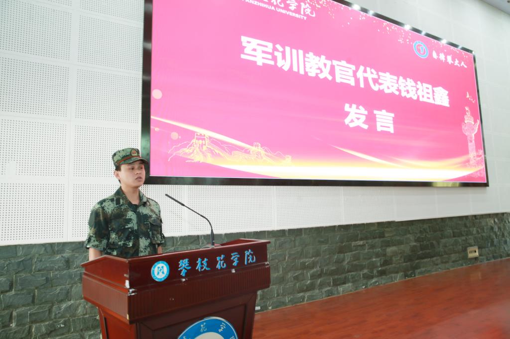 会议开始,全体人员奏唱国歌,播放军训教官视频。退役大学生代表钱祖鑫看完视频感慨万千,他告诉战友们,军训有苦也有累,每次参训都有不一样的收获。他号召全体退役大学生一定要把吃苦耐劳、无私奉献的精神传承下去,做引领“自律攀大人”的标兵和发光体。