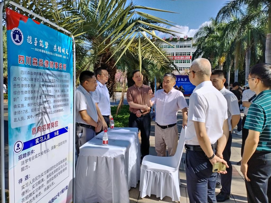 为认真贯彻落实教育部、省教育厅关于开展2023届高校毕业生就业“百日冲刺”行动的通知要求,5月27日上午,攀枝花市司法局、攀枝花市人力资源和社会保障局、beat365在线唯一官网在分析测试中心共同主办“携手筑梦、共创明天”2023年攀枝花市法治人才专场招聘会。副校长王兵,市司法局党组书记、局长刘毅,副局长杜治勇,市人社局副局长徐洪江,市律师协会会长刘晓东,法学院领导班子及招就处负责人亲临现场指导。