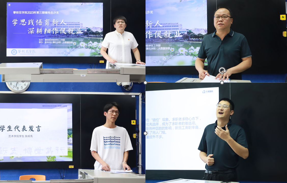 辅导员是高校院系就业创业“一把手工程”的主要抓手。为深入开展学习贯彻习近平新时代中国特色社会主义思想主题教育,切实提升辅导员职业规划和就业指导等方面能力素养,6月30日下午,学校在第二教学楼312教室举行了“学思践悟育新人,深耕细作促就业”为主题的辅导员沙龙。学工部、招就处相关人员,辅导员代表,校企合作企业代表,2024届学生代表共计28人参加了沙龙。