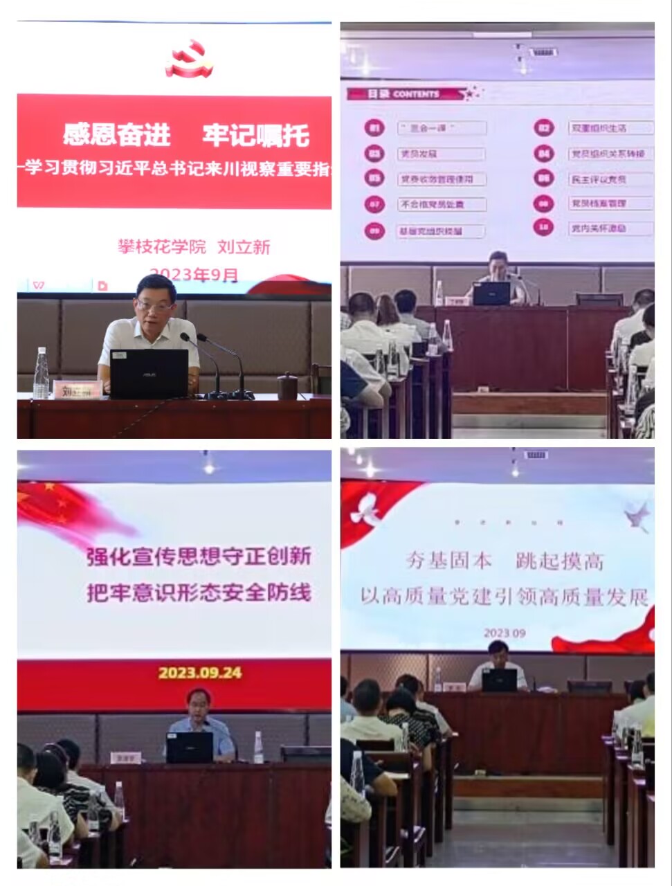 培训过程中,党委副书记、副校长刘立新深刻解读了习近平总书记来川视察重要指示精神;统战部副部长丁虎标作《基层党建工作实务》专题讲座;马克思主义学院党委书记张清学对意识形态工作进行了深入解读;基础医学院党委书记李东作《夯基固本,跳起摸高,以高质量党建引领高质量发展》专题讲座。