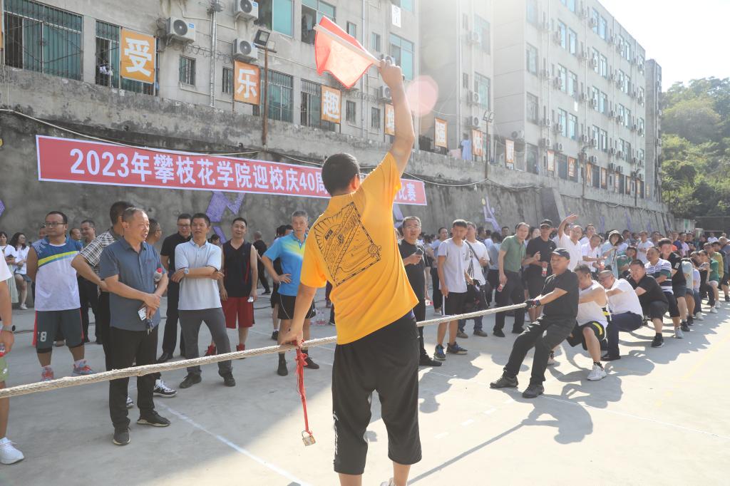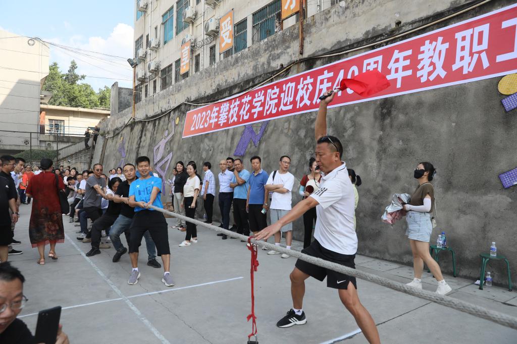 为庆祝beat365建校40周年,激发全校教职工的荣誉感,丰富业余文化生活。9月27日,由工会主办、体育部承办的迎校庆40周年教职工拔河比赛在学校排球场举行。各二级分工会组成的18支代表队近400名选手参加比赛。