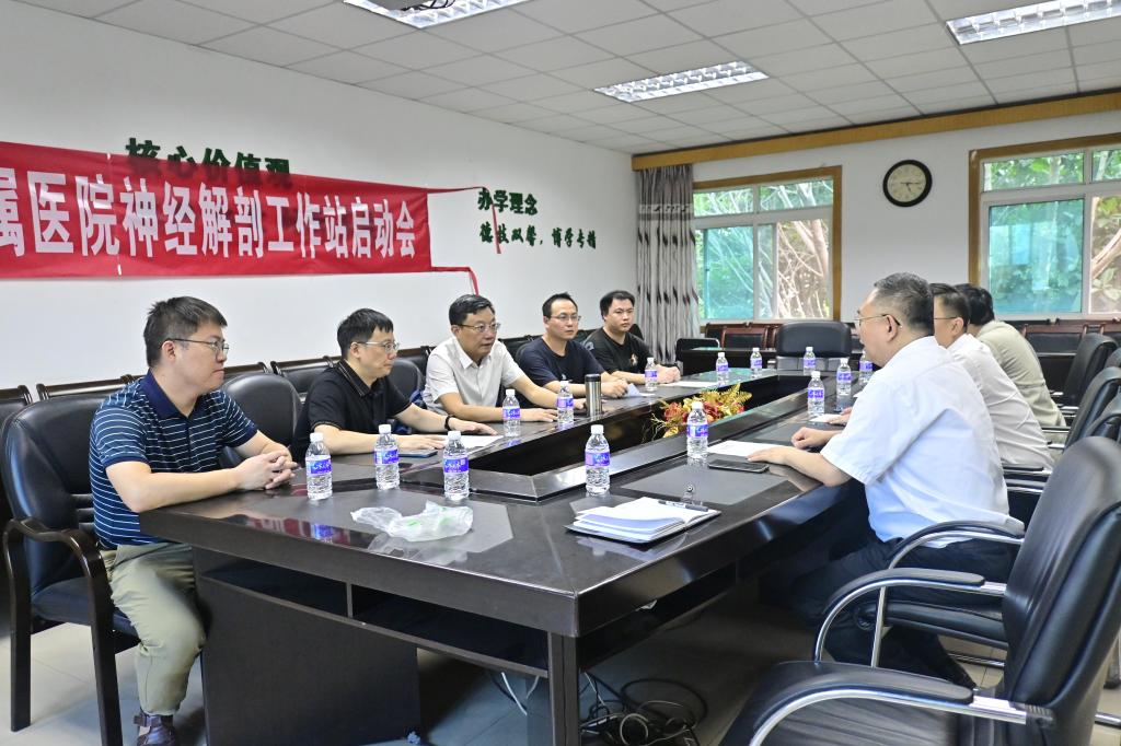 9月26日下午,beat365在线唯一官网暨附属医院神经解剖工作站挂牌启动仪式在beat365医学院会议室举行。党委副书记、副校长刘立新,基础医学院院长赵牧、副院长徐万宇,附属医院院长陈建勋出席挂牌启动仪式。基础医学院人体解剖与组织胚胎学教研室主任史恺、脑科学中心主任张弋,附属医院神经外科主任鄢克坤、曹友林等出席挂牌揭幕式。挂牌仪式由附属医院神经外科主任鄢克坤主持。